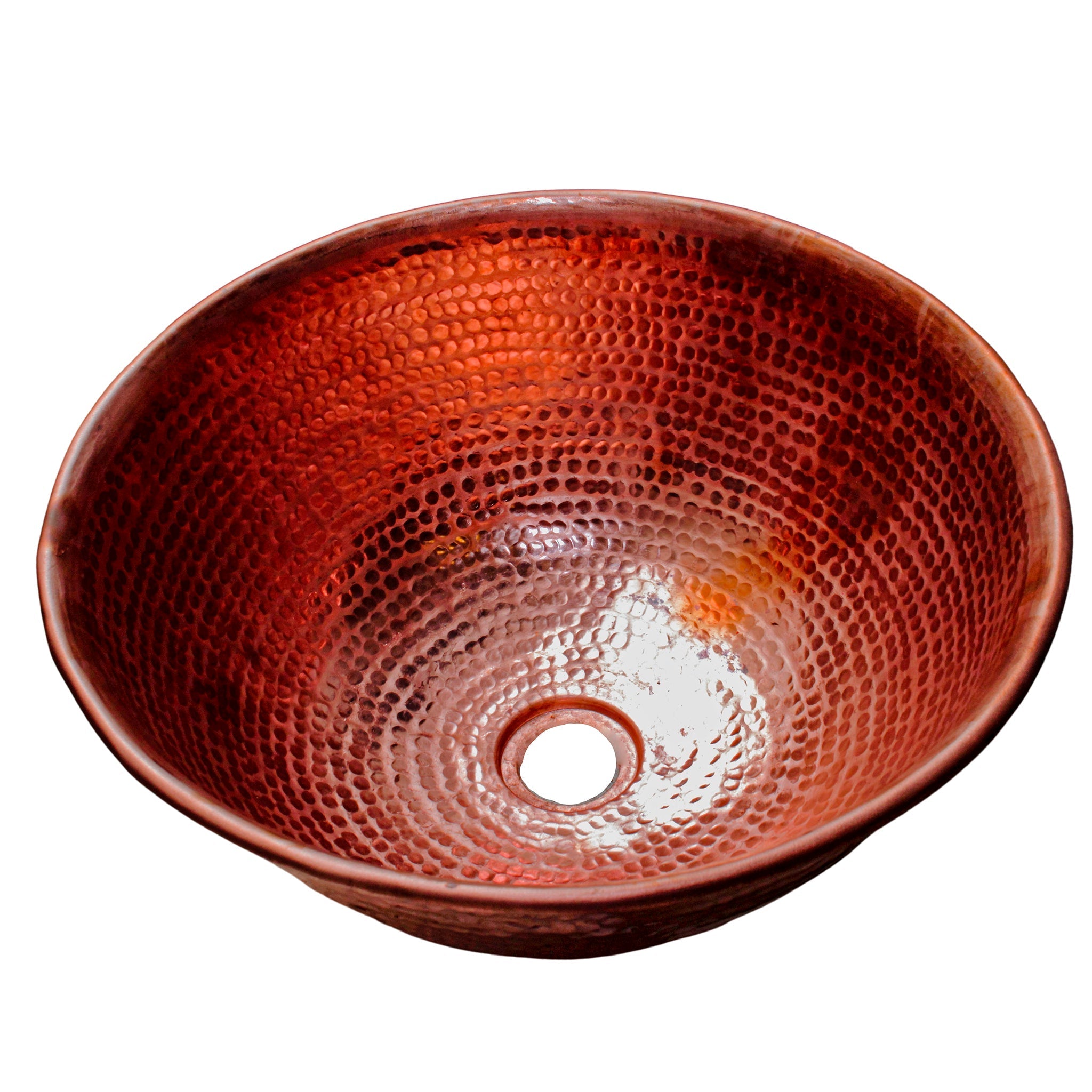 Lavabo de cobre martillado de 35cm/13.7in de diametero en forma de , ovalin de cobre